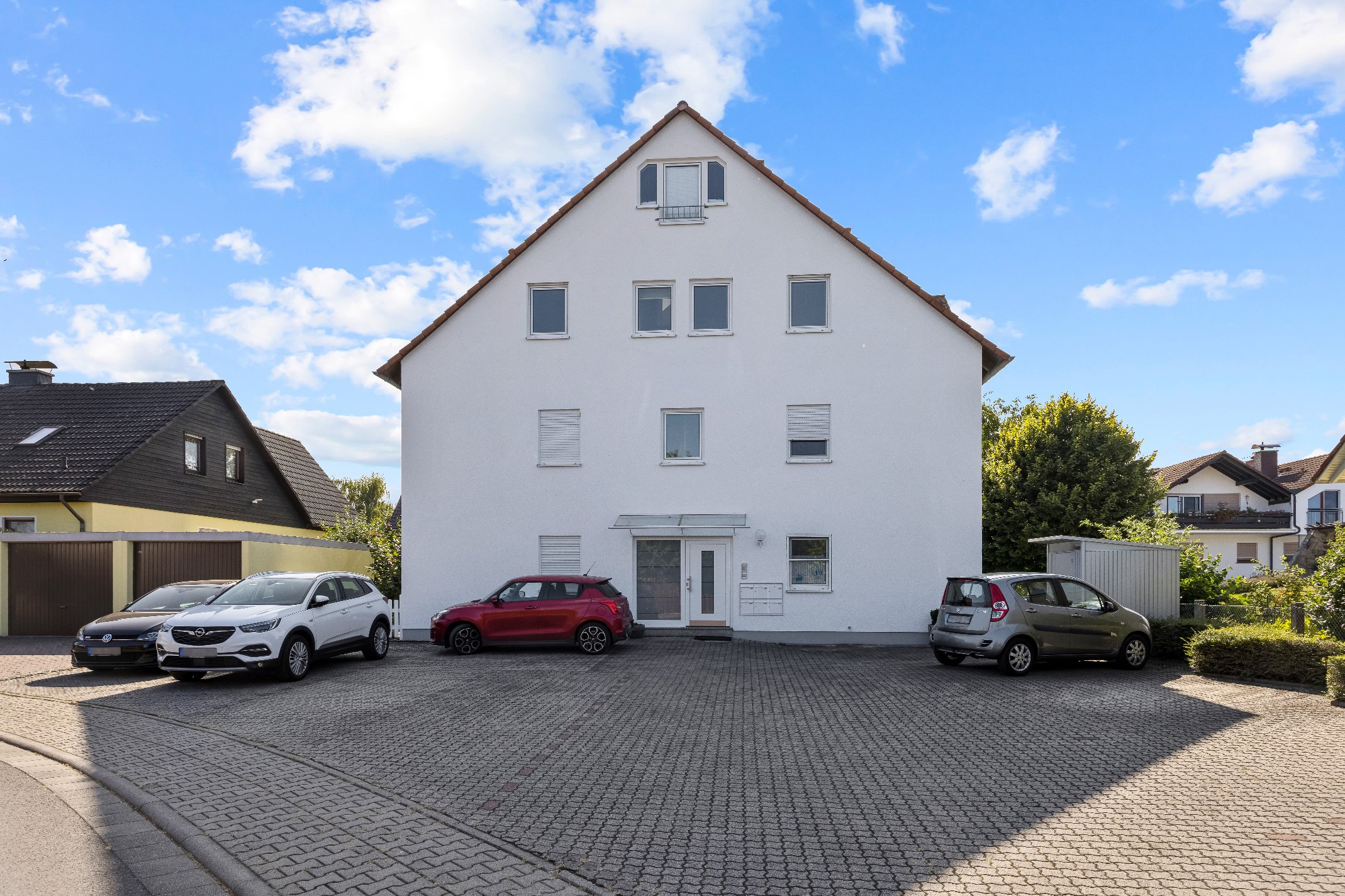 Im Kellergeschoss des Wohnhauses befindet sich ein eigener Kellerraum sowie die gemeinschaftliche Waschküche. Für Ihr Fahrzeug ist ein Stellplatz im Außenbereich vorhanden.