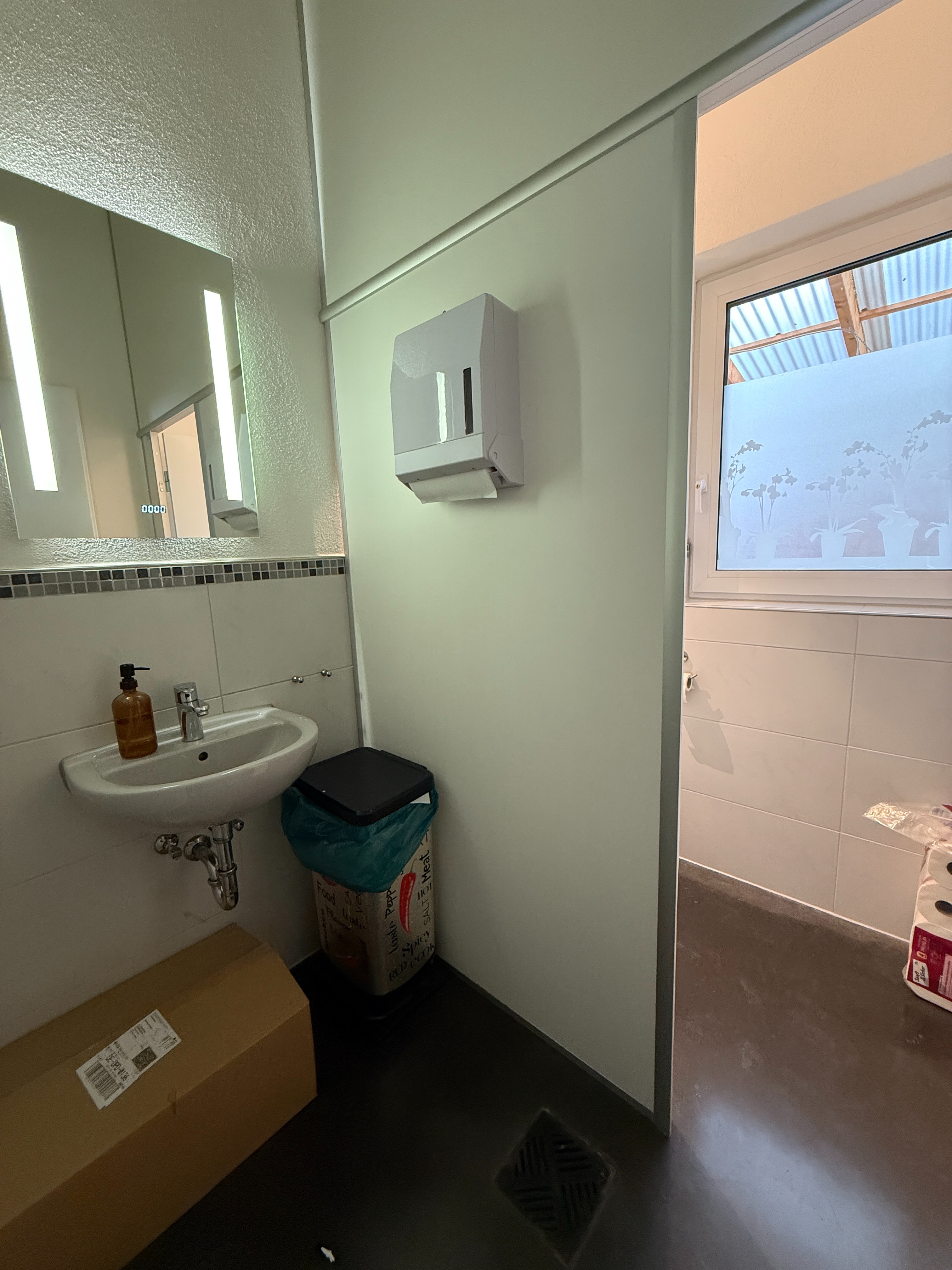 Zur weiteren Ausstattung gehören eine Teeküche, zwei WC-Anlagen und ein Büro.