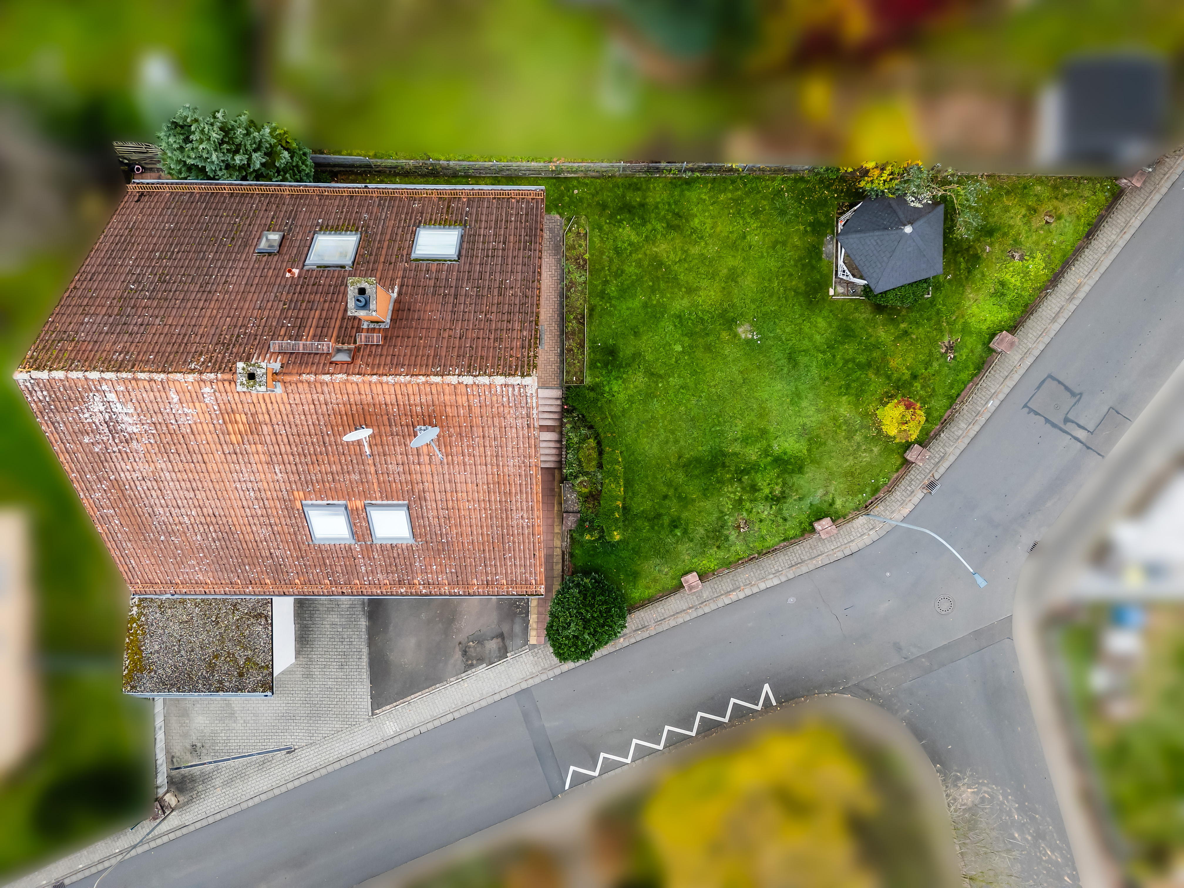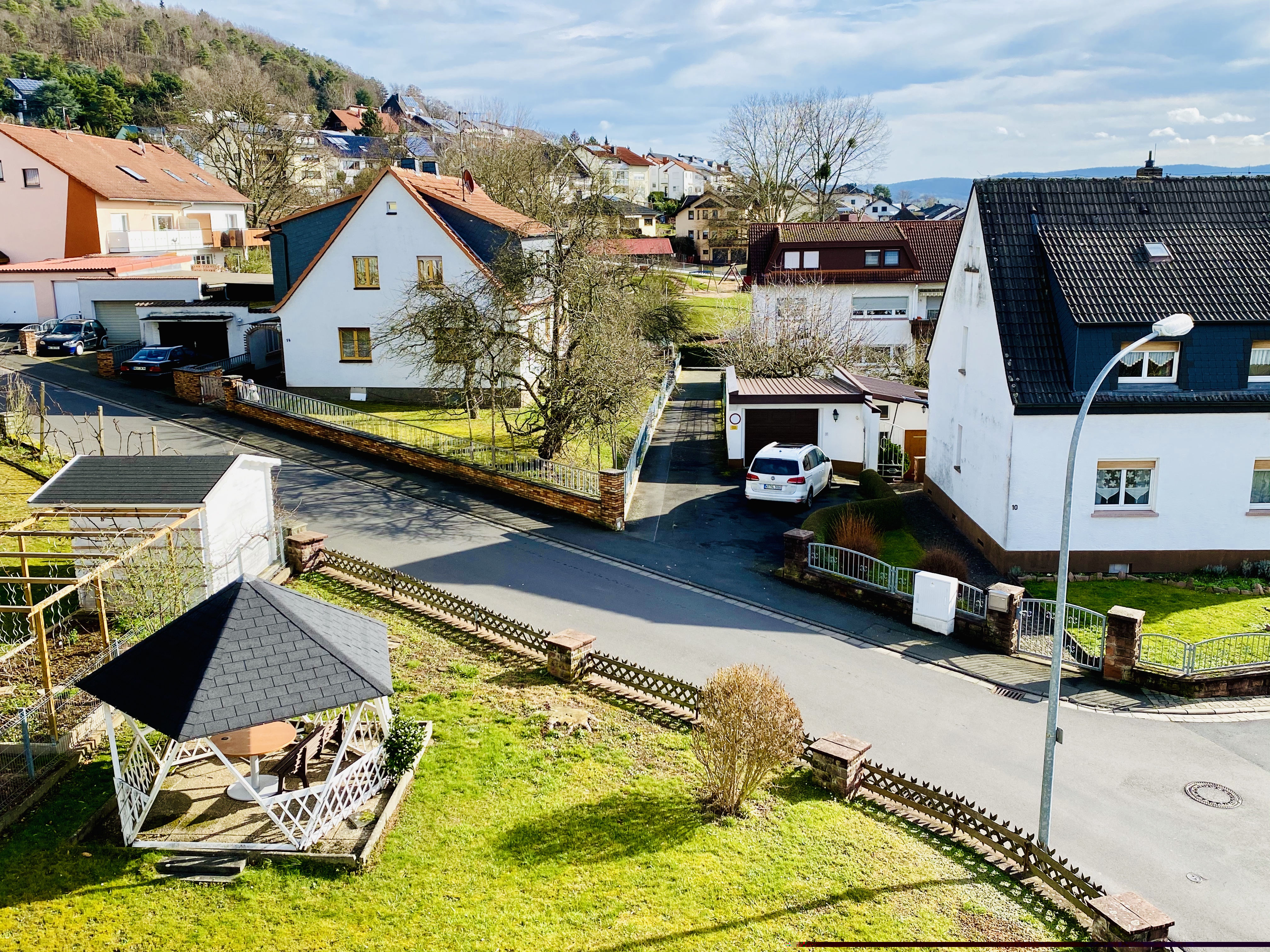 Wie Sie den Aufnahmen entnehmen können, gibt es auch einen schönen seitlichen Garten, der mit einem festen Pavillon ausgestattet ist und den Bewohnern zur gemeinschaftlichen Gartennutzung zur Verfügung steht.
