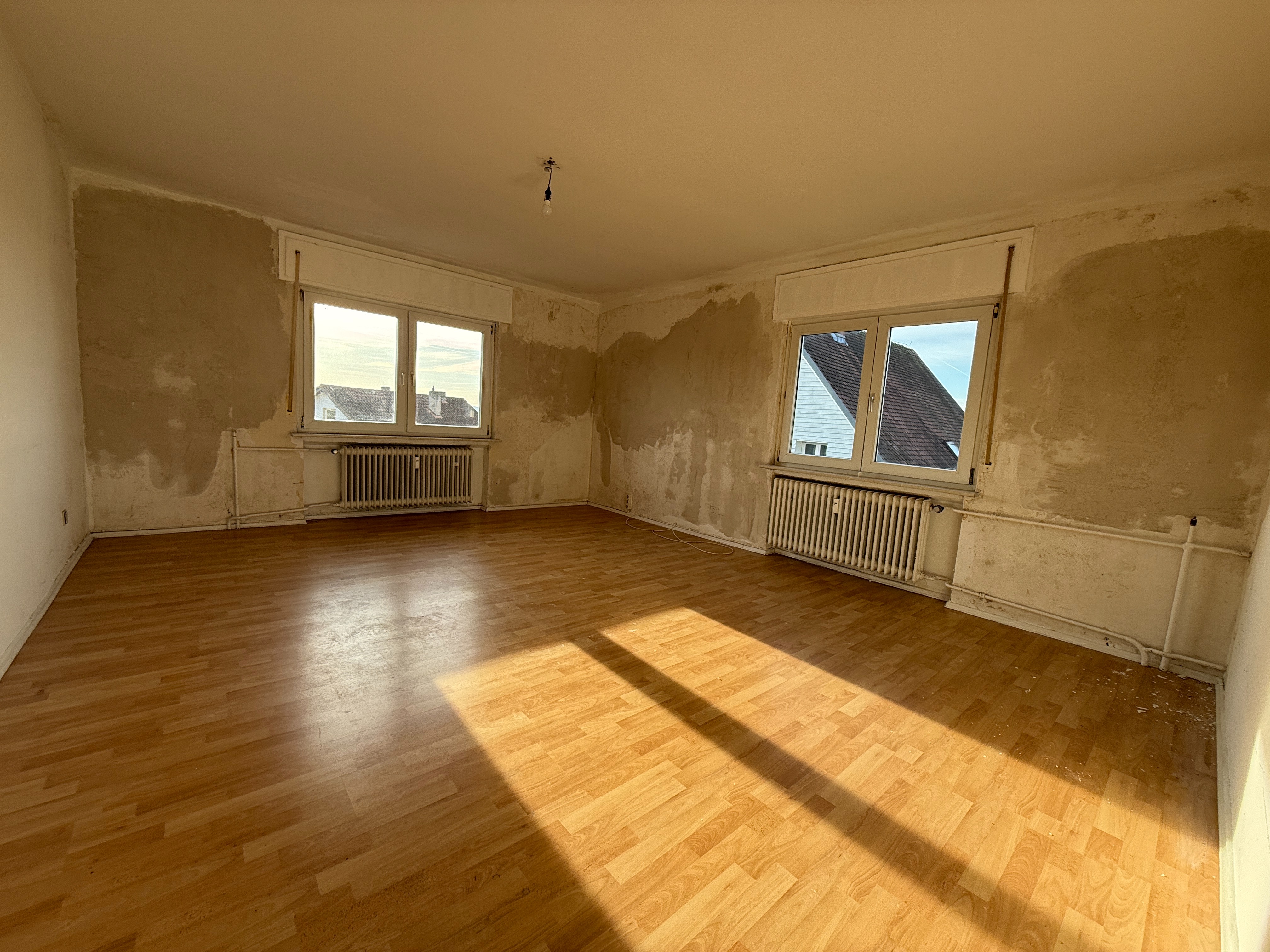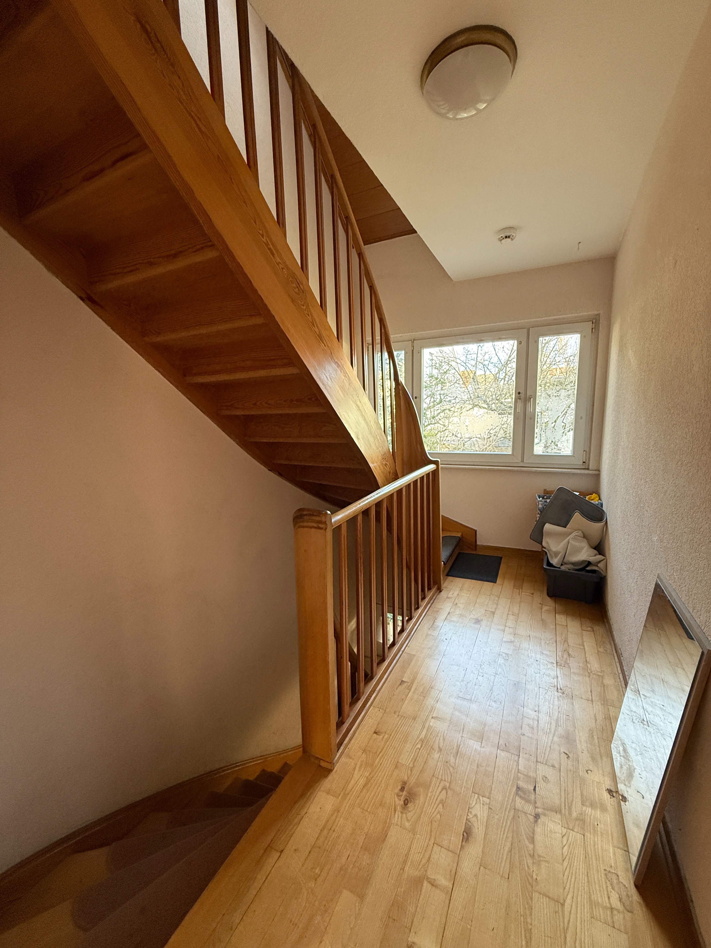 Die Wohnungen selbst befinden sich in einem unterschiedlichen Renovierungsstand. So wurde zuletzt die Wohnung im Erdgeschoss vor 3 Jahren vollumfänglich saniert. Die Dachgeschosswohnung wurde früher vom Eigentümer selbst genutzt und wurde aus diesem Grund in einem gehobenen Standard um die Jahrtausendwende ausgebaut. Vor fünf Jahren wurde die Dachgeschosswohnung dann außerdem mit neuen Bodenbelägen ausgestattet und die Wände wurden renoviert.