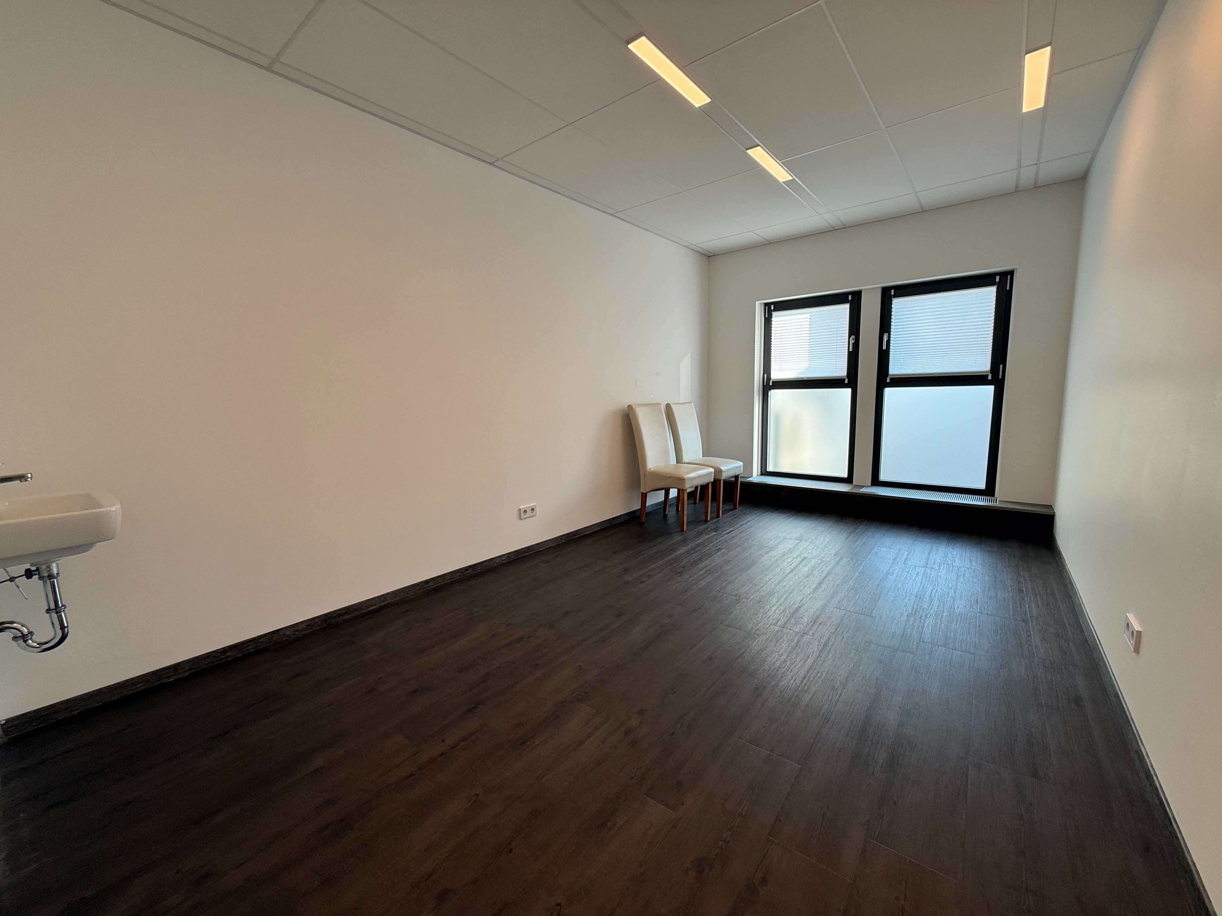 Der mittlere Raum ist mit einem Waschbecken ausgestattet. Bei einer Nutzung als reinen Büroraum kann das Waschbecken auf Mieterwunsch auch zurückgebaut werden.