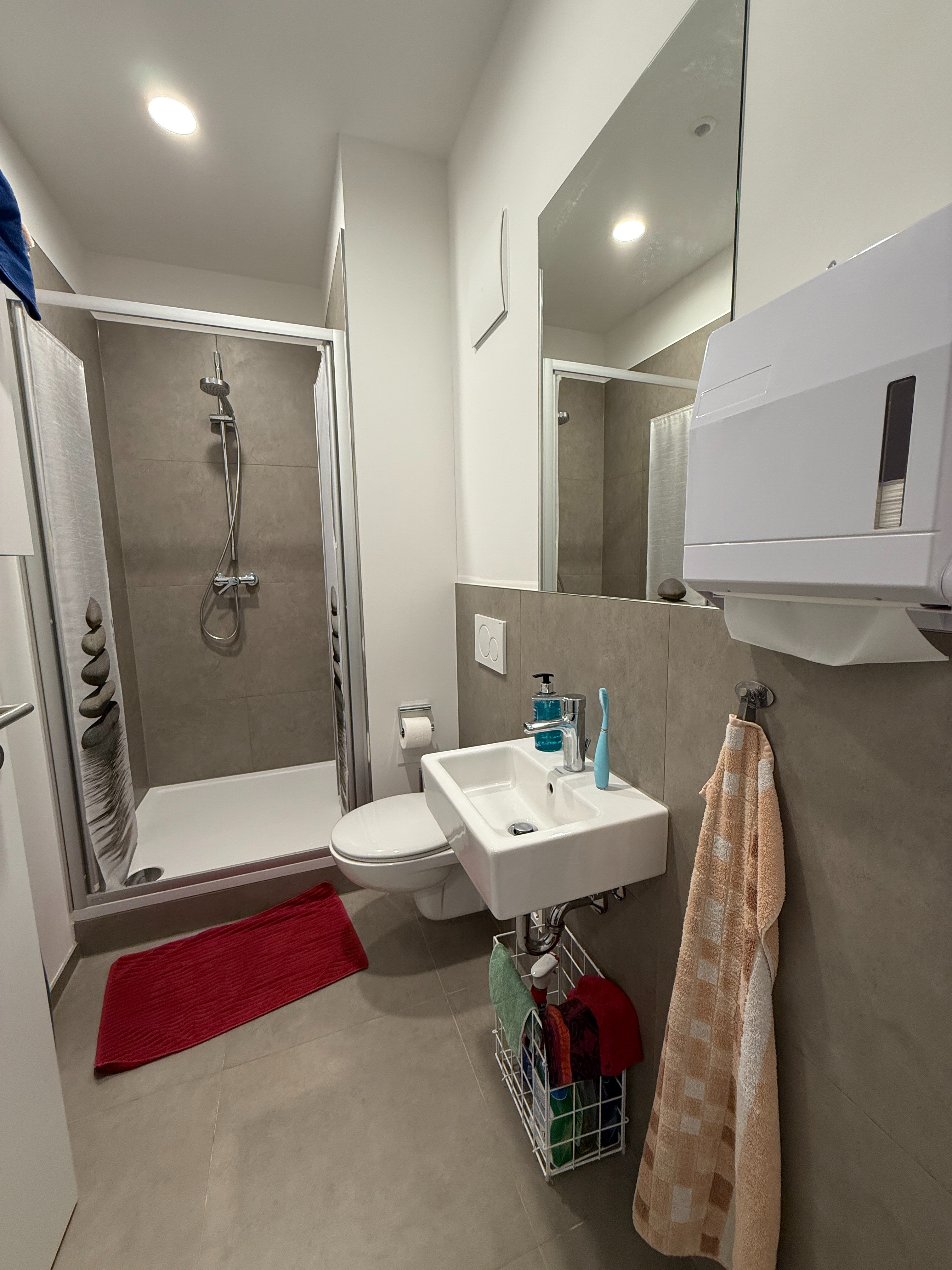 Neben der integrierten offenen Teeküche gehört ein separates WC sowie ein separates Duschbad noch zur Mietfläche.