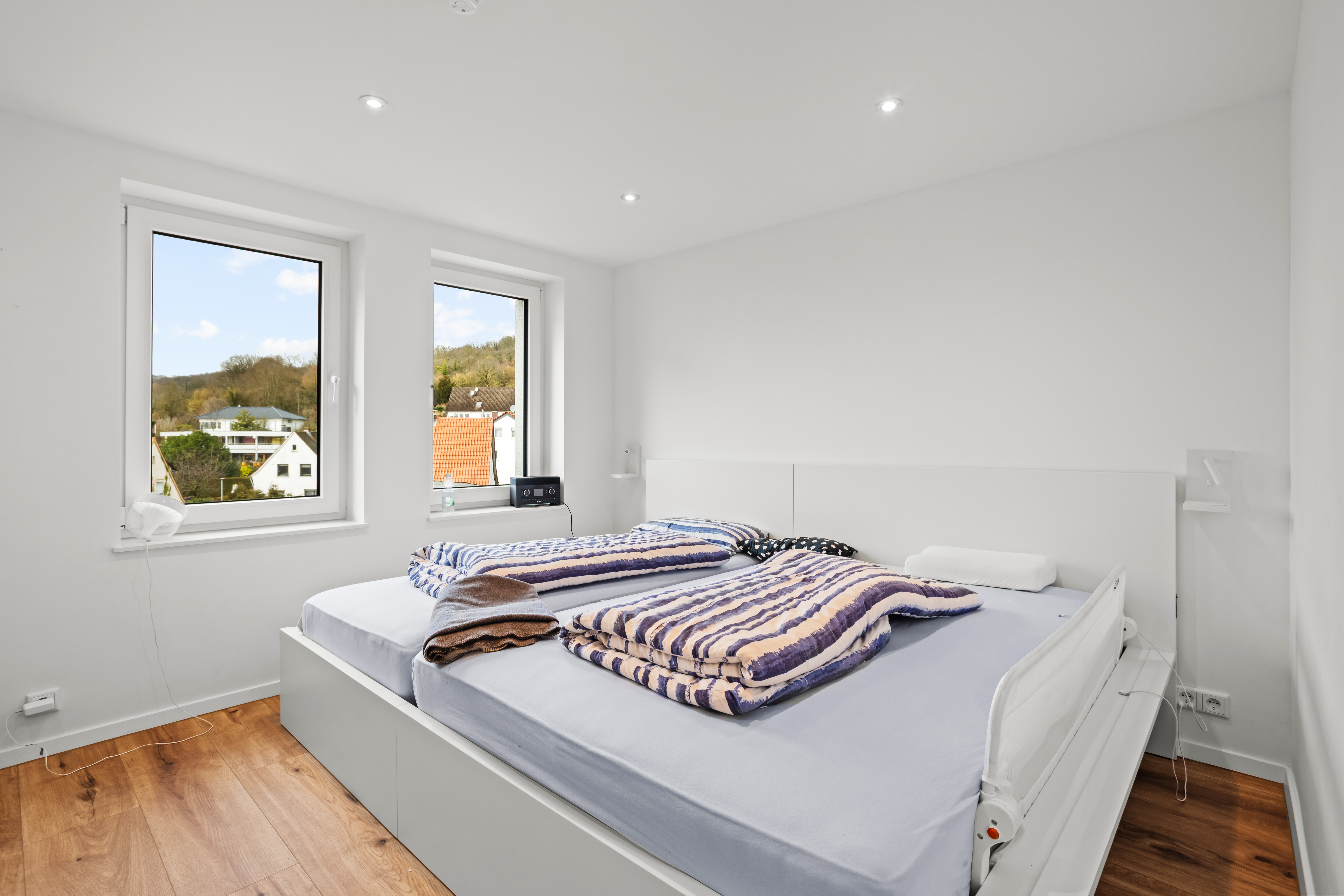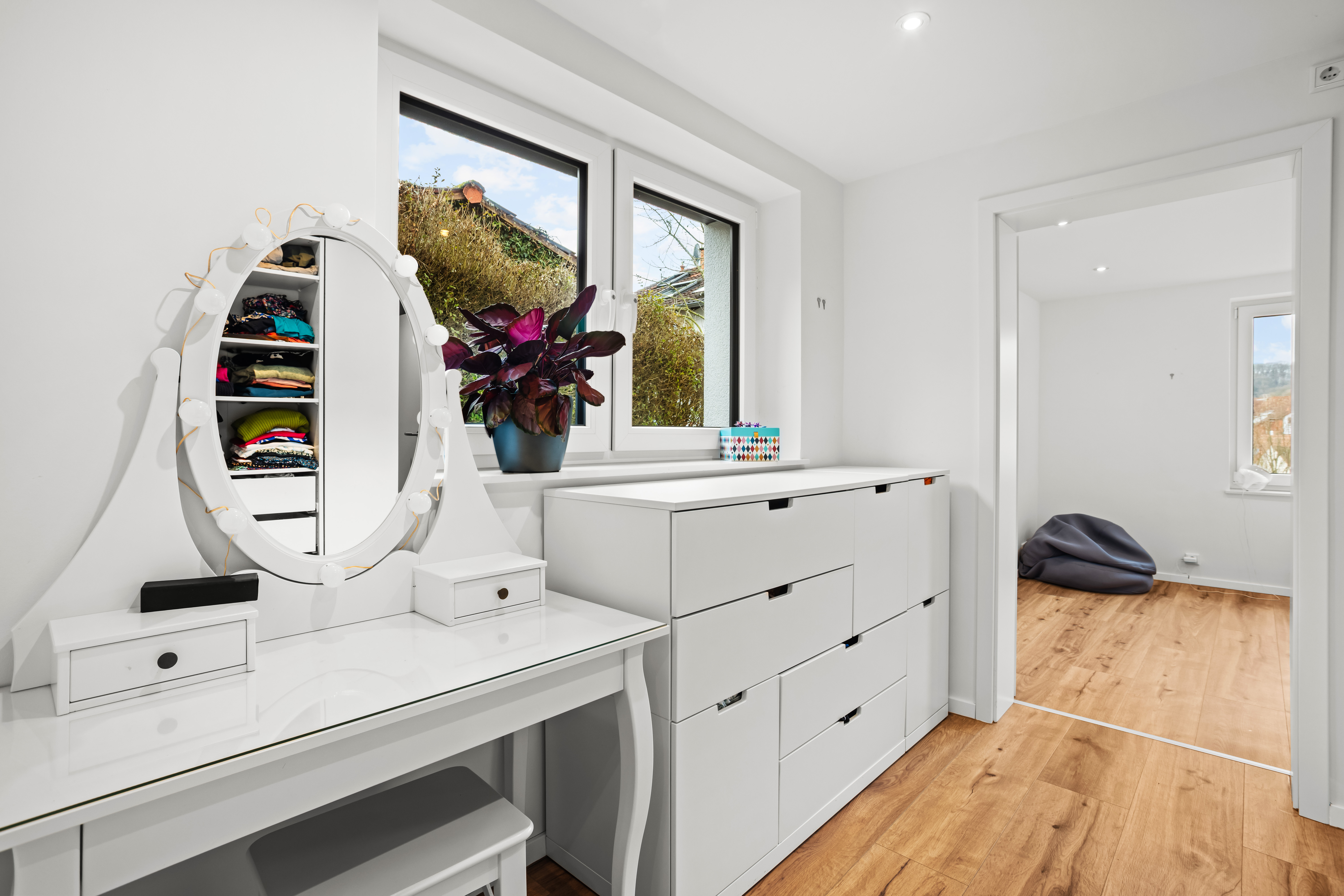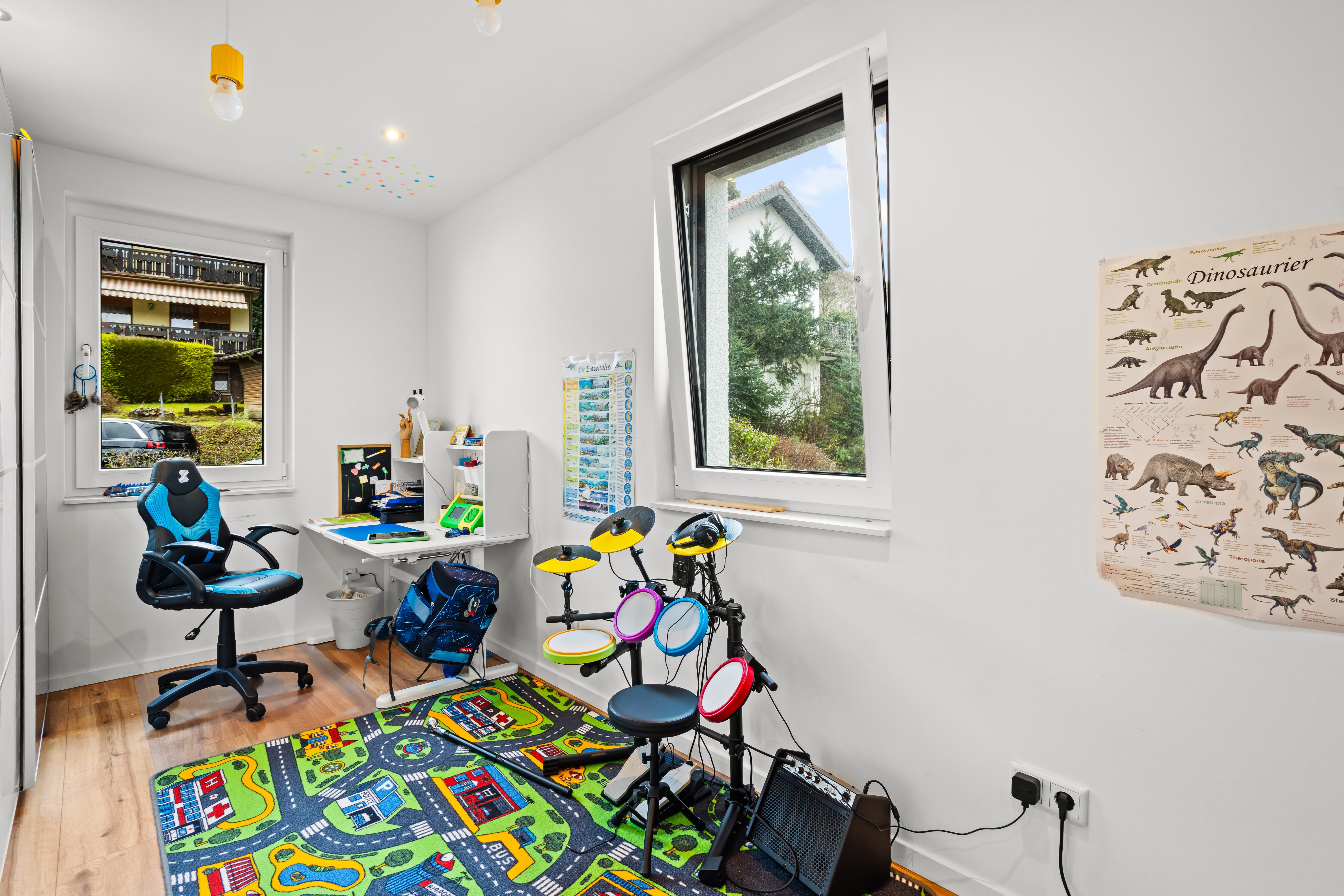 Auf dieser Ebene befinden sich zudem zwei Kinderzimmer sowie ein modernes Duschbad.