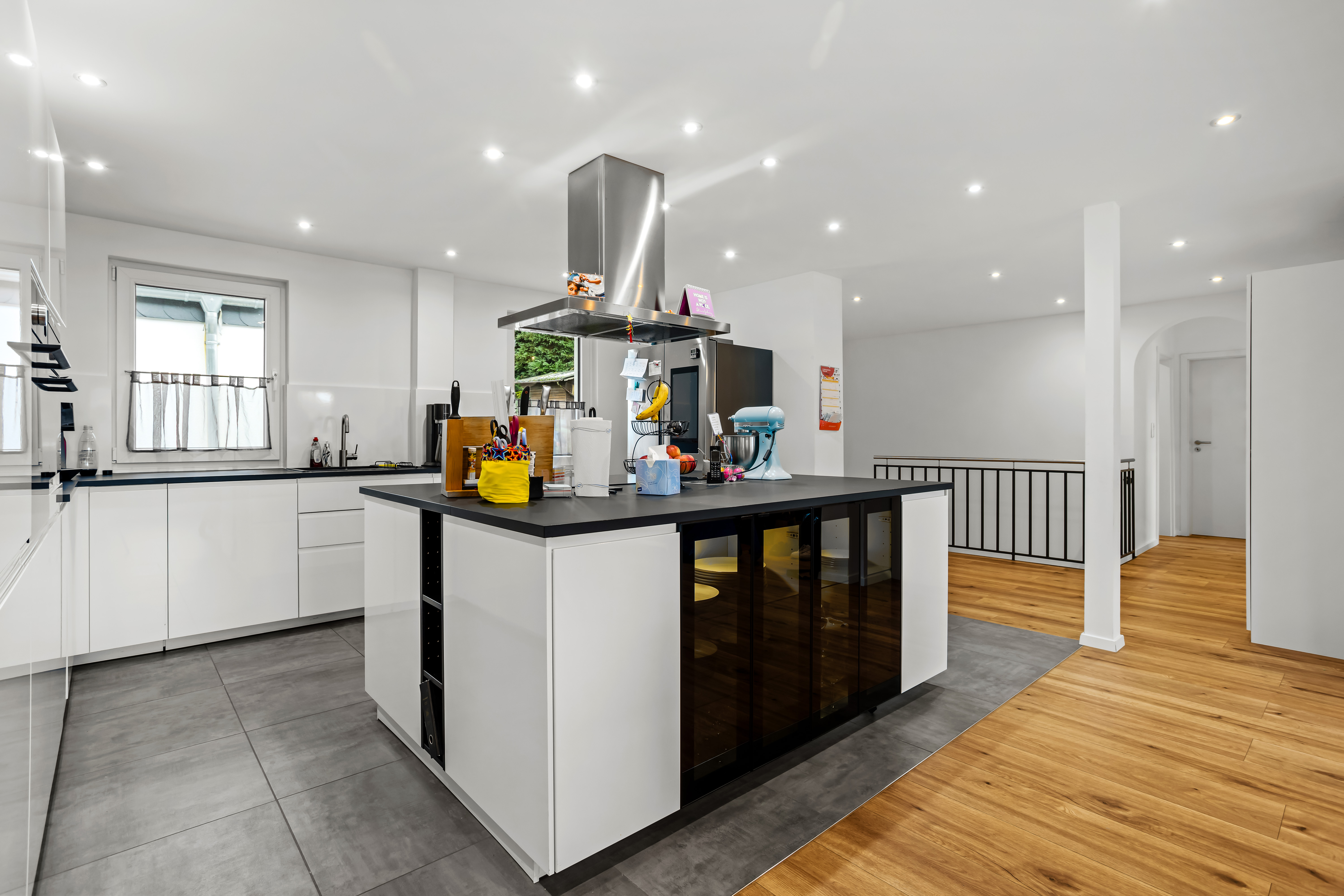 Das Haus wurde – wie bereits erwähnt – im Jahr 2022 umfassend kernsaniert. Das Erdgeschoss basiert ursprünglich auf einem Bien-Fertighaus, während das Untergeschoss in massiver Bauweise errichtet wurde. Der gedämmte Dachboden dient derzeit als großzügiger Abstellraum. Die Details der Sanierungsmaßnahmen entnehmen Sie bitte der beigefügten Anlage. Erwähnt sei an dieser Stelle, dass insbesondere durch die vorgenommenen energetischen Sanierungen ein Energiebedarf von 34 kWh/(m2a) (Energieklasse A) erreicht wurde. Ergänzend möchten wir darauf hinweisen, dass für den Fertighausbereich ein Raumluftgutachten vorliegt, das bereits vor der Sanierung im unrenovierten Zustand keinerlei Auffälligkeiten zeigte.