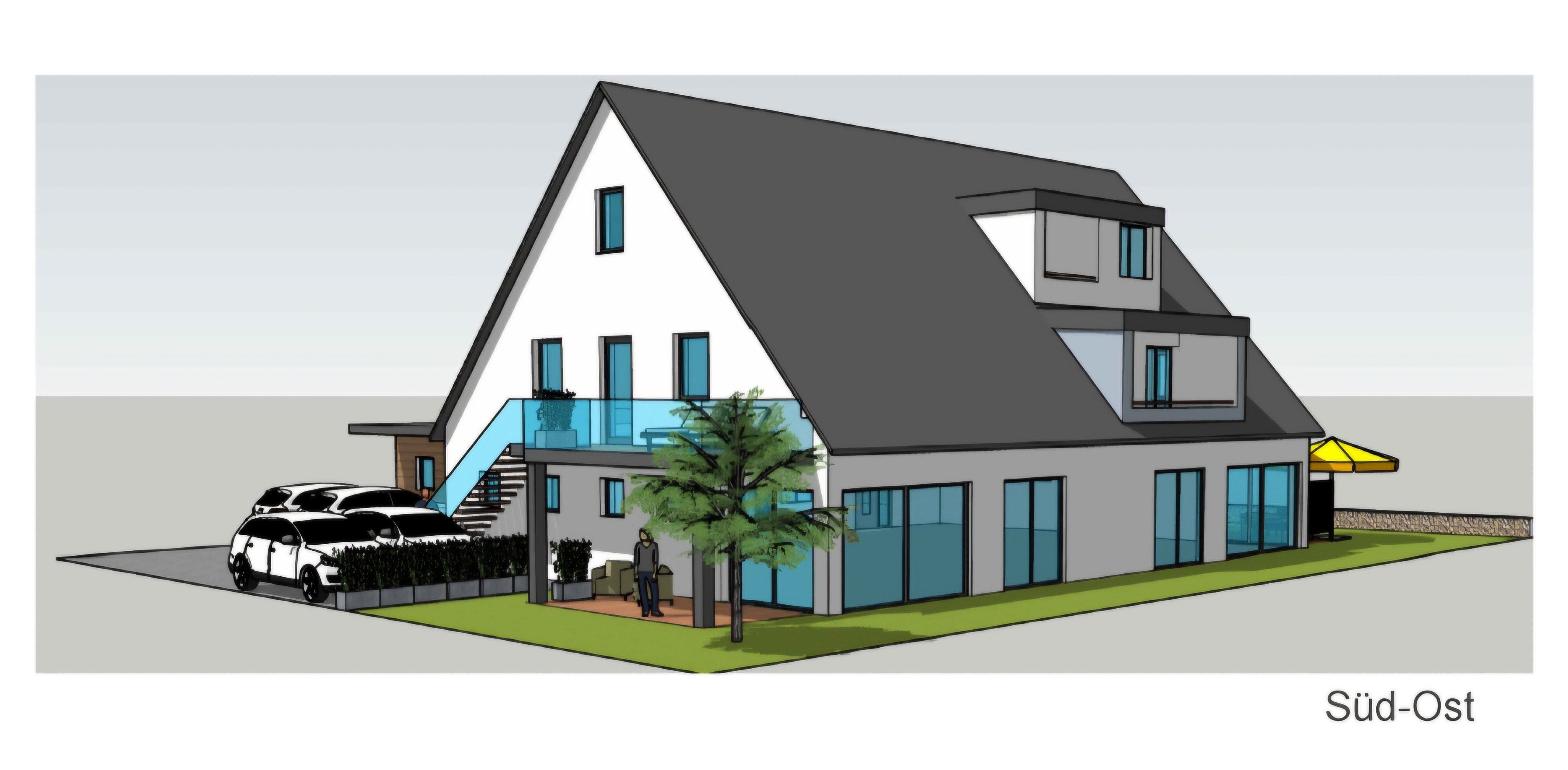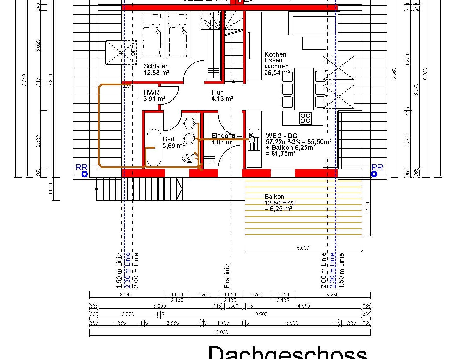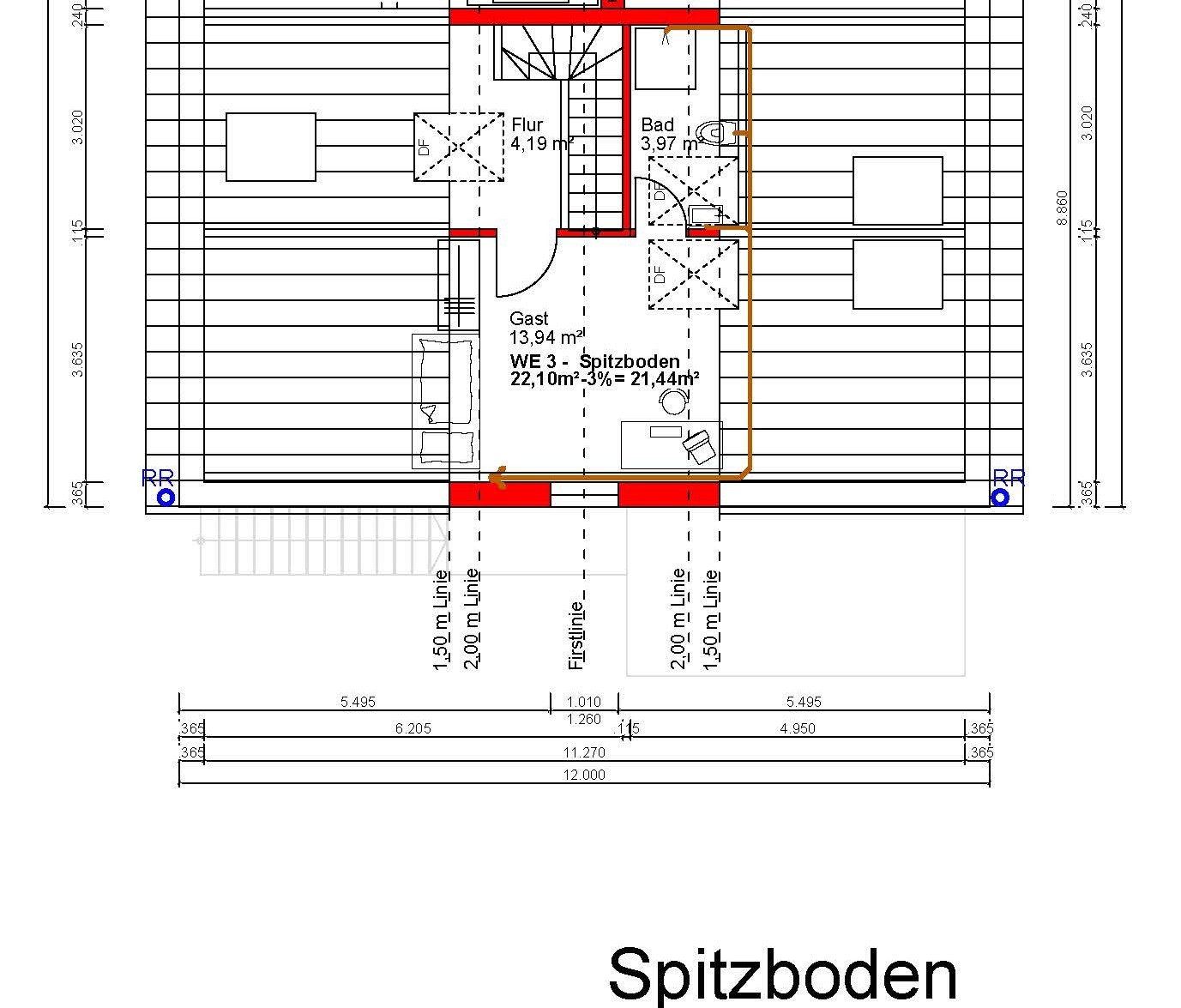 Die bereits im Bau befindliche 3-Zimmer-Wohnung verfügt über einen eigenen Zugang über eine Außentreppe und befindet sich im Dachgeschoss und Spitzboden eines 3-Familien-Wohnhaus.