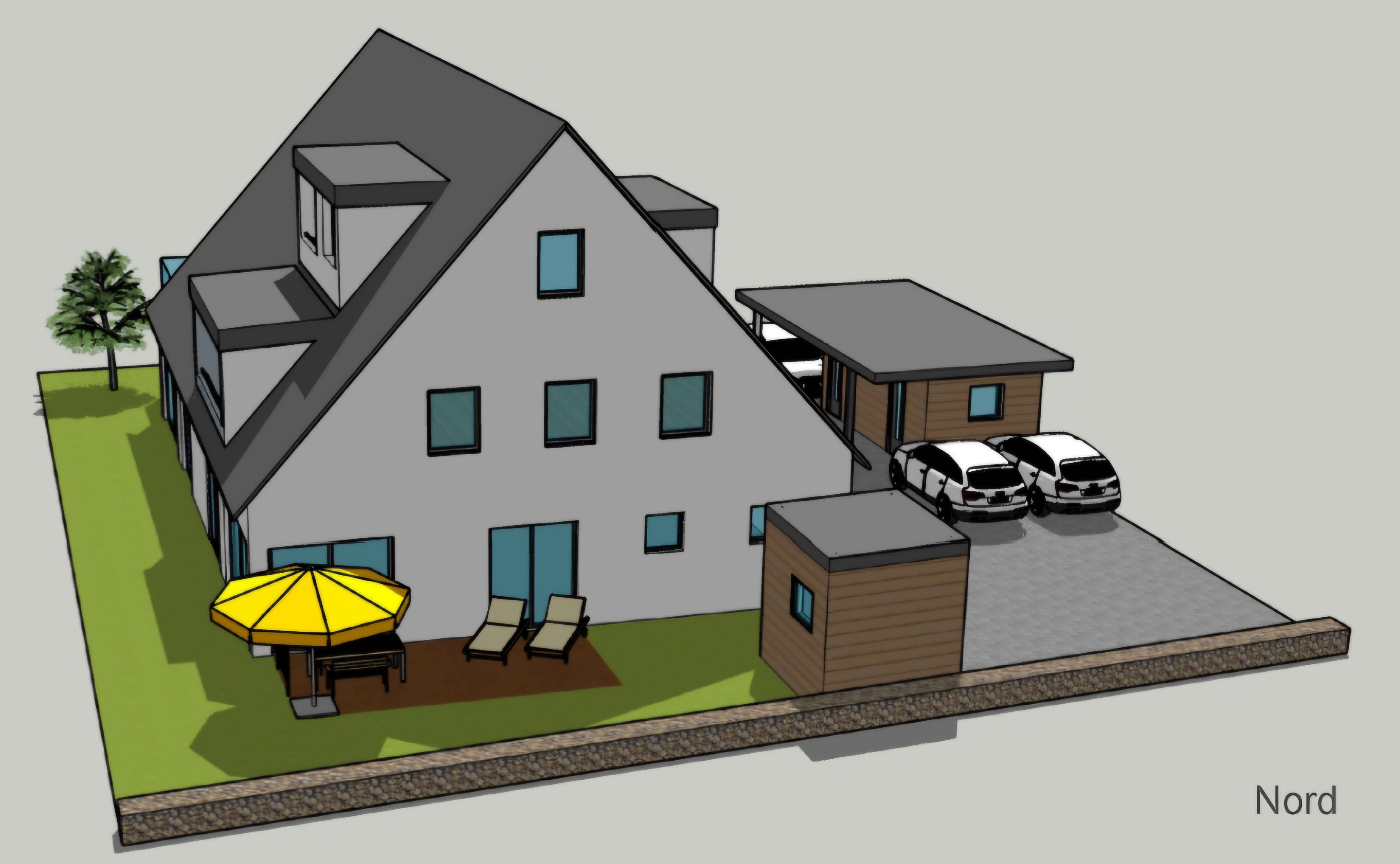 Im Kaufpreis ebenfalls enthalten sind zwei Kfz.-Stellplätze (inkl. E-Ladesäulen). Für die Gemeinschaft stehen des Weiteren noch Fahrradstellplätze zur Verfügung. Jede Wohnung hat außerdem im Nebengebäude noch eine kleine Lagerbox als Kellerersatz.