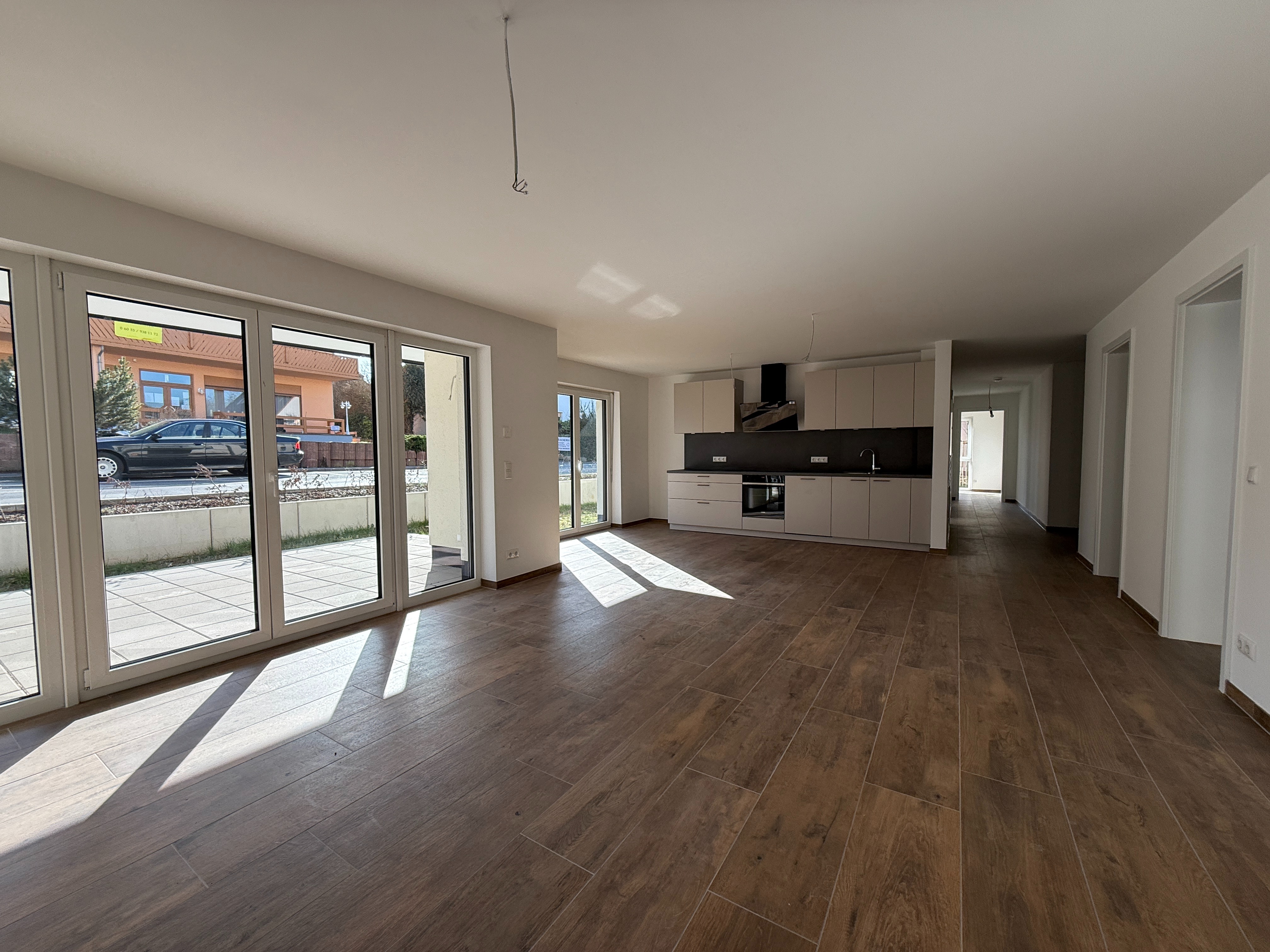 Am Stadtrand von Alzenau befindet sich diese zur Anmietung zur Verfügung stehende 4-Zimmer-Wohnung mit ca. 134 qm Wohnfläche im Erdgeschoss eines Mehrfamilien-Wohnhauses. Die Wohnung ist ausgestattet mit einem offenen Wohn- und Essbereich mit offener Küche (die abgebildete neue Einbauküche ist im Mietumfang enthalten) und Zugang zur Terrasse und zum eigenen Gartenbereich, drei Schlafzimmer, einem Abstellraum, einem Gäste-Bad sowie einem Tageslicht-Badezimmer, jeweils mit begehbarer Dusche, das Hauptbadezimmer verfügt außerdem noch über eine Badewanne.