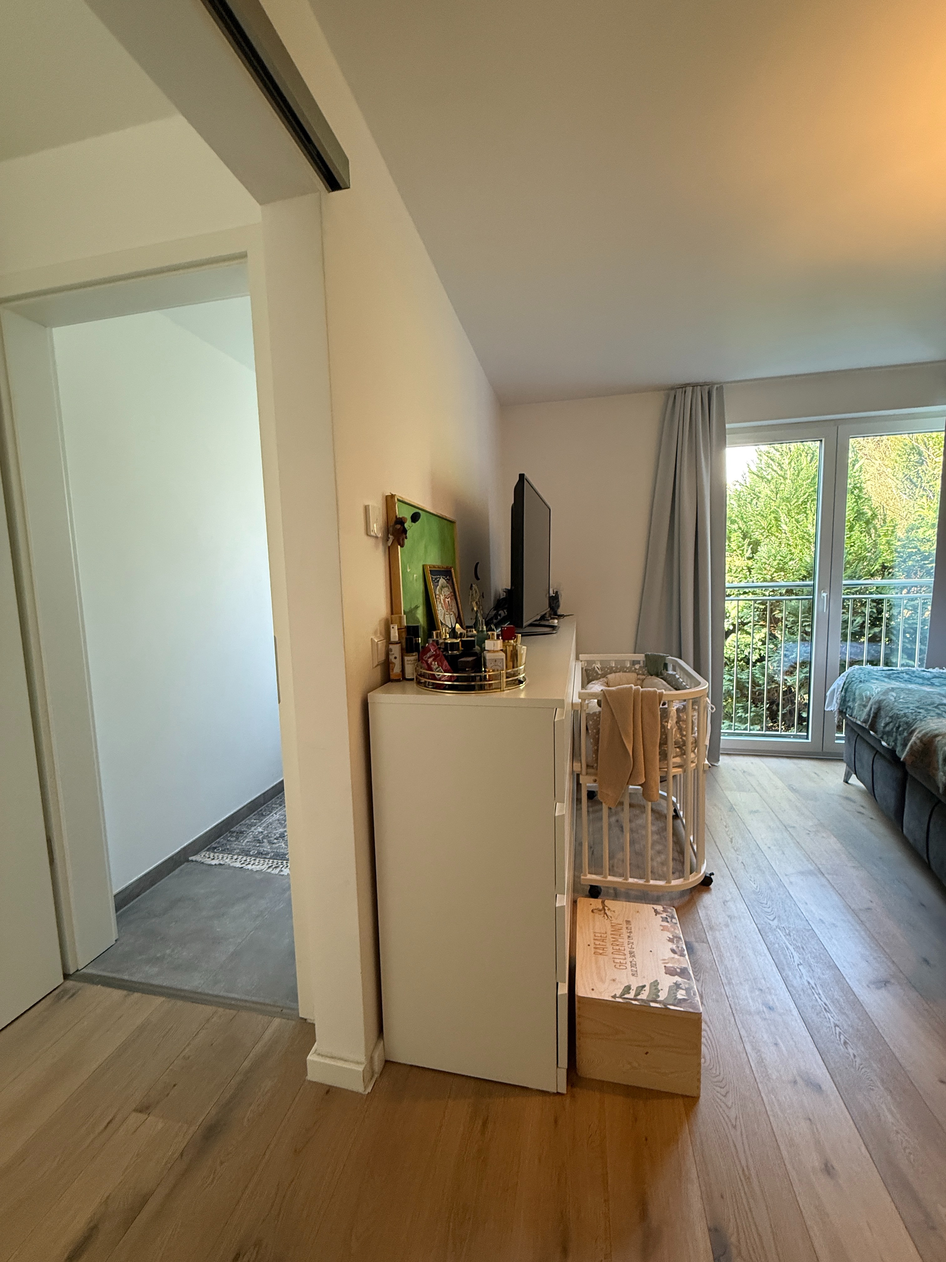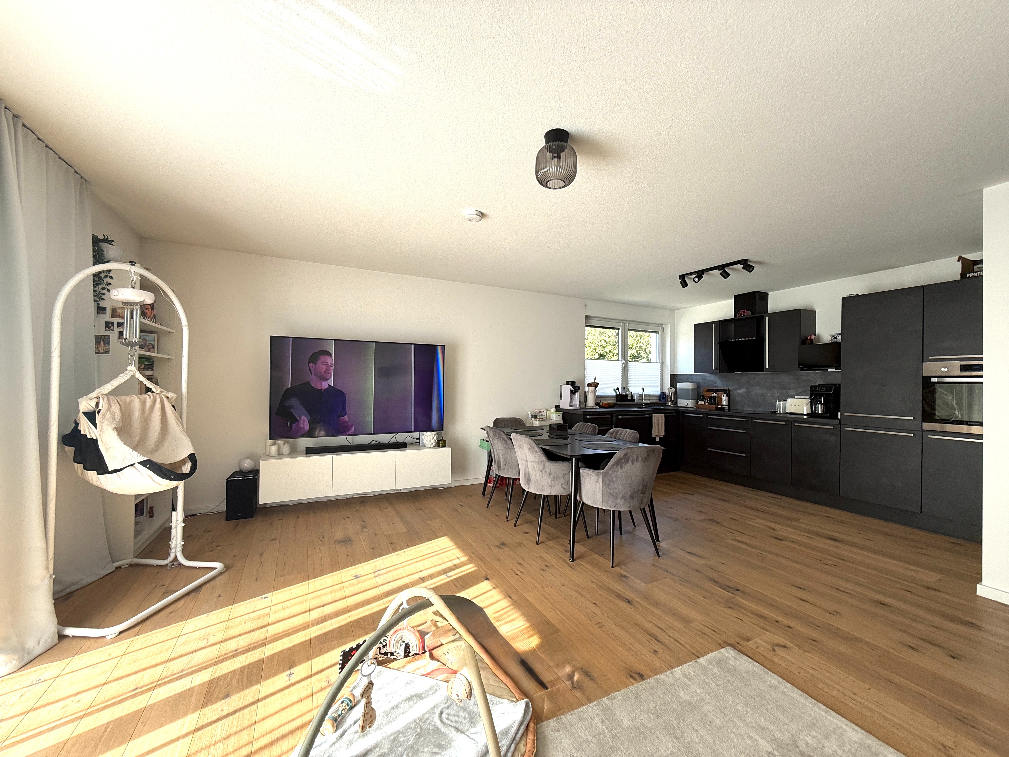 Auf rund 80 m² Wohnfläche erwartet Sie ein großzügig geschnittener, offen gestalteter Wohn- und Essbereich mit integrierter Küche und Zugang zum sonnigen Balkon in Süd-West-Ausrichtung. Ergänzt wird das Raumangebot durch ein Schlafzimmer, ein Tageslichtbad mit begehbarer Dusche, ein separates Gäste-WC, einem gut nutzbaren Dielenbereich sowie einem praktischen Hauswirtschaftsraum.