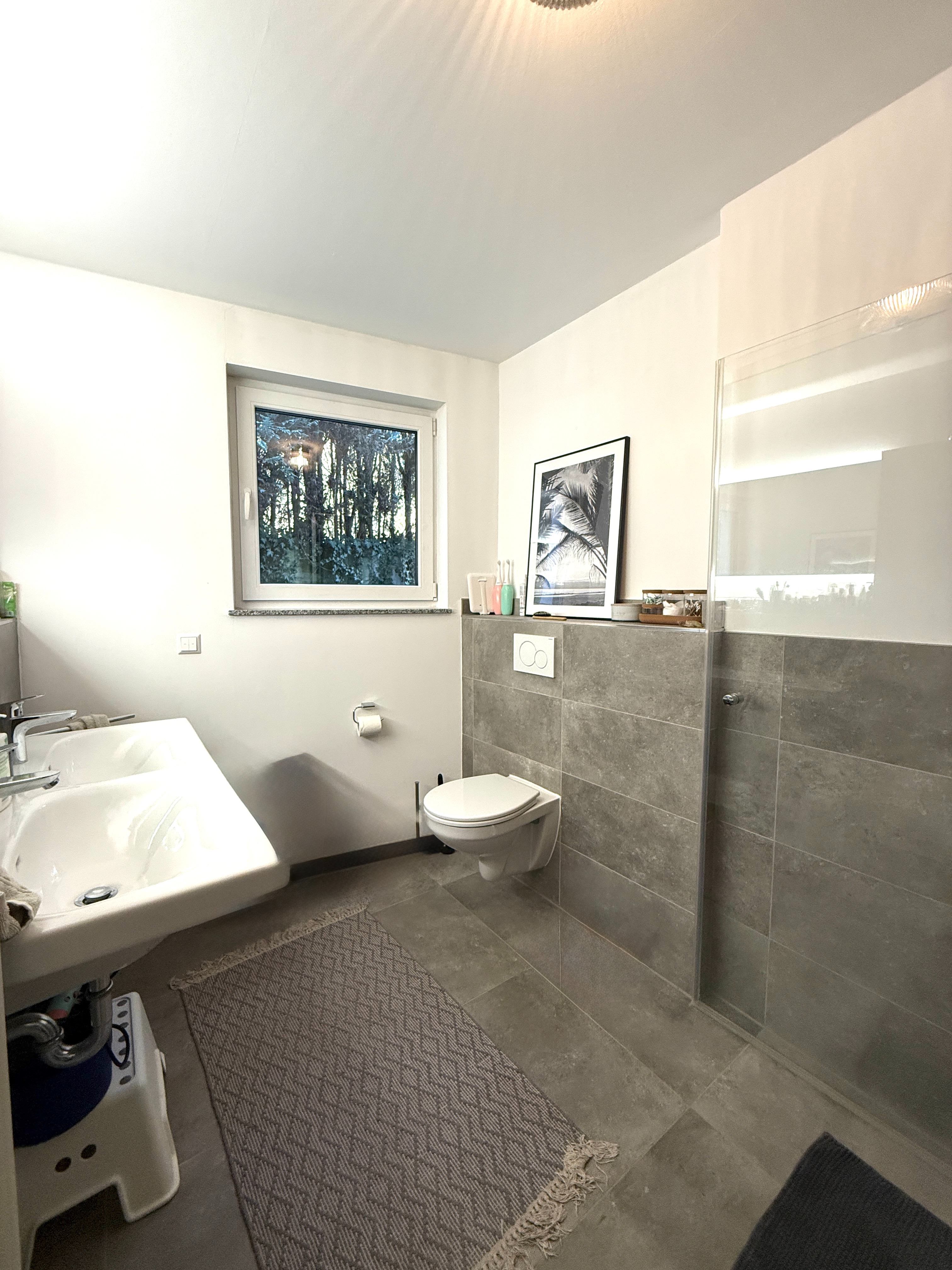 - Ausstattung des Bades Dusche Fenster Badewanne