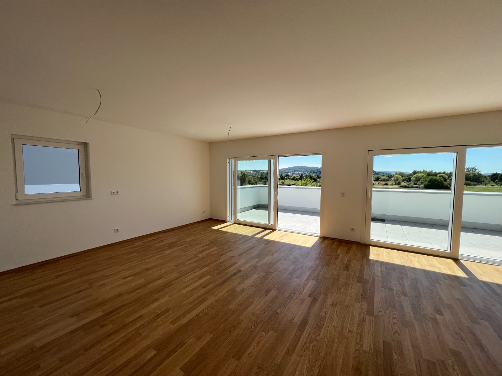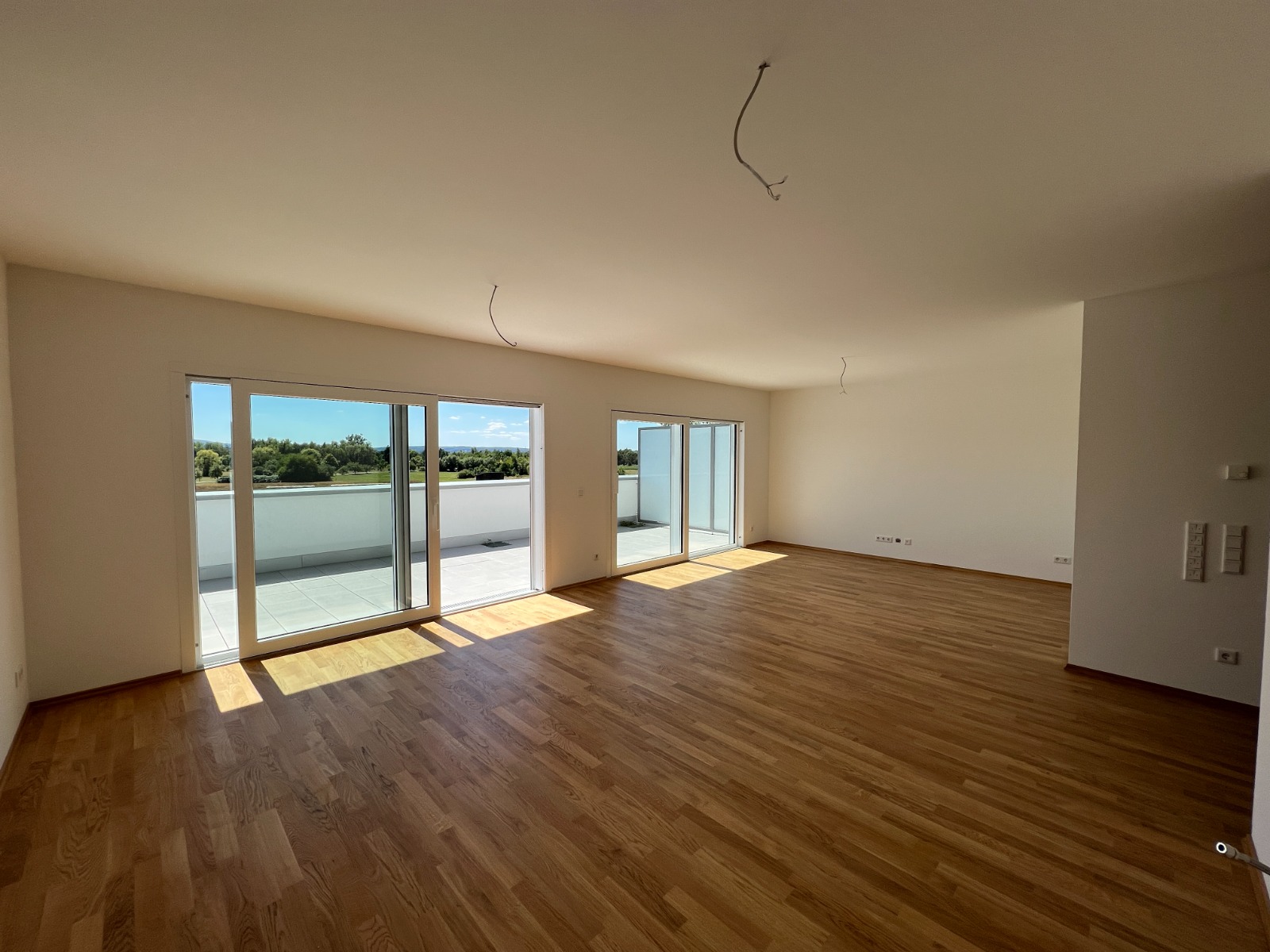 Die ca. 104 m² Wohnfläche überzeugen durch eine durchdachte und großzügige Raumaufteilung. Herzstück der Wohnung ist der lichtdurchflutete, offen gestaltete Wohn- und Essbereich mit integrierter Einbauküche. Zwei gut geschnittene Schlafzimmer bieten jeweils direkten Zugang zur kleineren Dachterrasse. Ergänzt wird das Raumangebot durch ein modernes Tageslichtbad mit großer, begehbarer Dusche sowie einen praktischen Flurbereich mit Einbauschrank und Anschlussmöglichkeiten für Waschmaschine und Trockner. Ein besonderes Highlight ist die ca. 40 m² große Süd-West-Dachterrasse mit herrlichem, unverbaubarem Blick in die Kinzigauen.