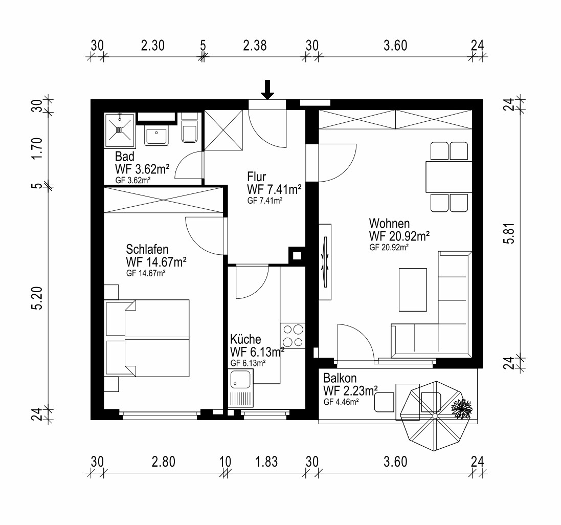- Wohnfläche ca. 55 m²