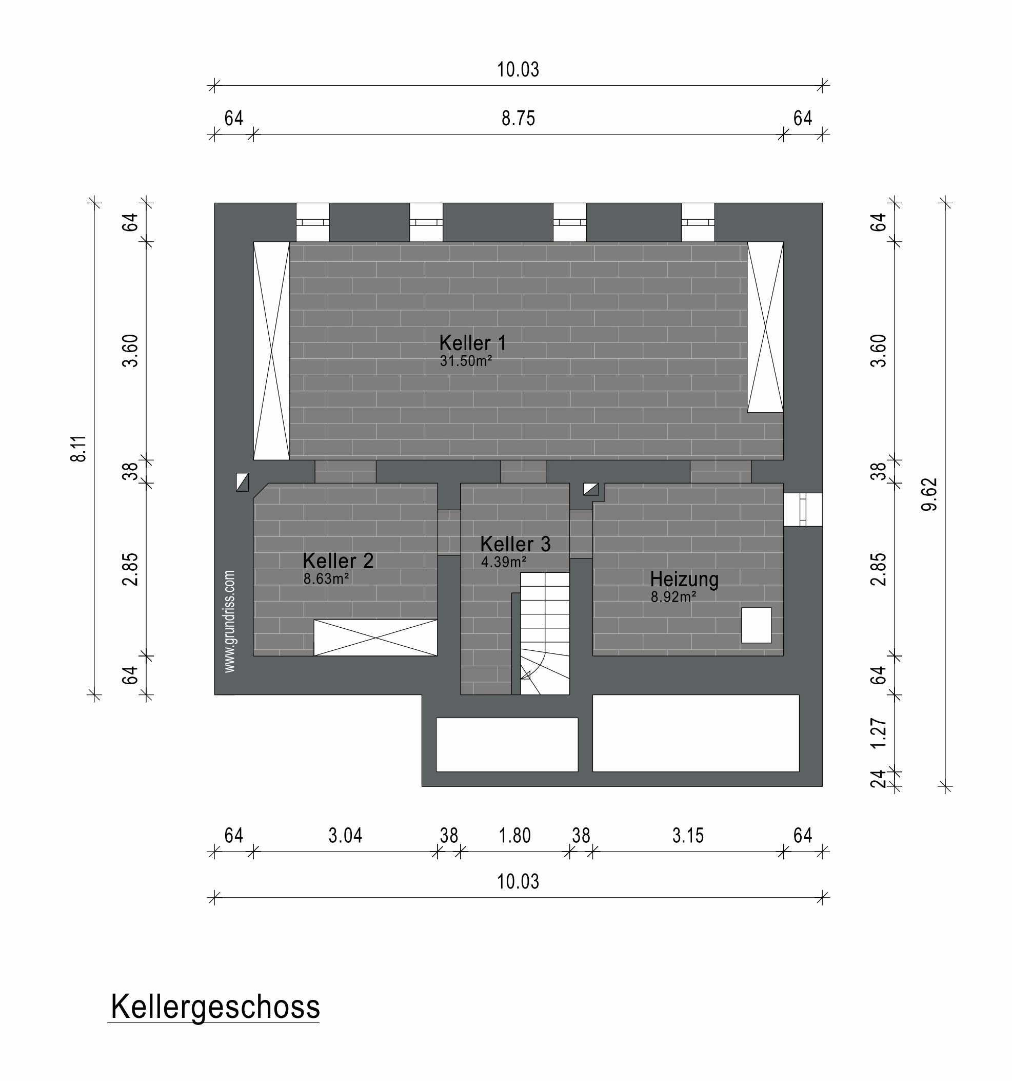 Das Wohnhaus ist komplett unterkellert und bietet Ihnen neben dem Heizungsraum noch drei ordentliche große Kellerräume. Beheizt wird das Wohnhaus mit einer Gas-Zentralheizung aus dem Jahr 2011.